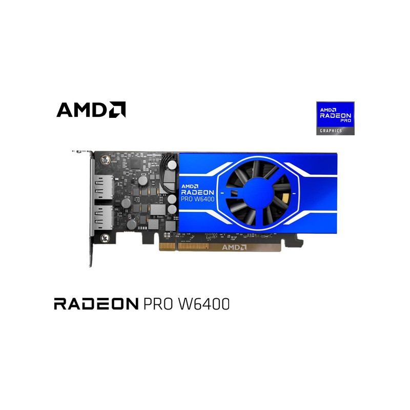 La tarjeta gráfica AMD Radeon™ PRO W6400, que cuenta con la galardonada arquitectura AMD RDNA™ 2, ofrece 4 GB de memoria GDDR6 dedicada, trazado de rayos de hardware, 16 MB de la nueva AMD Infinity Cache™ y está lista para utilizarse con 2 pantallas UHD HDR y ofrecer colores más reales.