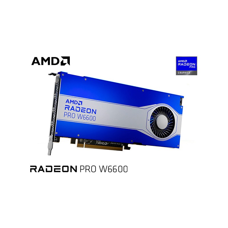 La tarjeta gráfica AMD Radeon™ PRO W6600, impulsada por la galardonada arquitectura AMD RDNA™ 2, cuenta con 8 GB de memoria GDDR6 dedicada, trazado de rayos por hardware, 32 MB de la nueva caché AMD Infinity y es compatible con pantallas UHD HDR 4 veces más exigentes, con colores más realistas.