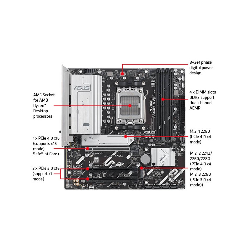 M.B. ASUS PRIME B840M-A WIFI (AM5) DDR5 (AMD RYZEN 9000)