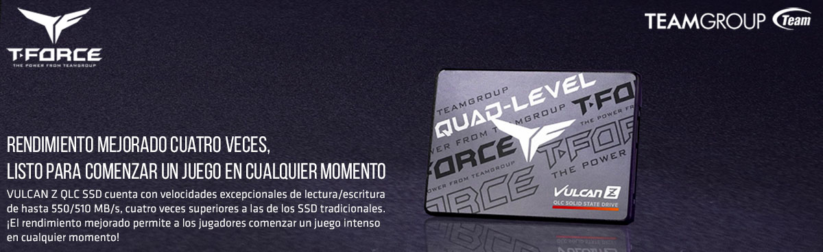 TEAMGROUP T-FORCE SSD VULCAN Z QLCCARACTERÍSTICASUna excelente opción para actualizaciones de juegos profesionales Rendimiento mejorado cuatro veces, listo para comenzar un juego en cualquier momento Gran capacidad a nivel de TB para almacenamiento de juegos sin preocupaciones Rendimiento y durabilidad excepcionales Rendimiento operativo optimizado...