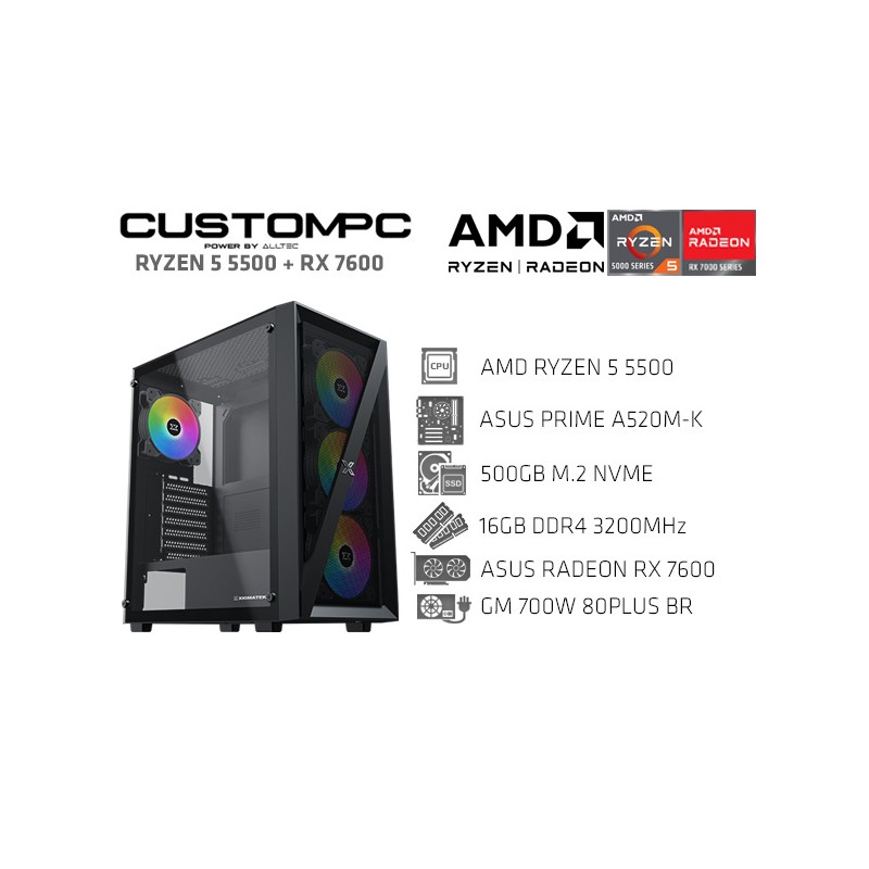 CUSTOMPC (AMD RYZEN 5 5500): 16GB, 500GB NVME, RADEON RX 7600