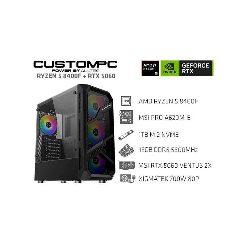 CUSTOMPC (AMD RYZEN 5 8400F): 16GB, 1TB NVME, RTX 5060