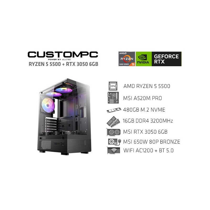 CUSTOMPC (AMD RYZEN 5 5500): 16GB, 480GB M.2, RTX 3050, WiFi+BT