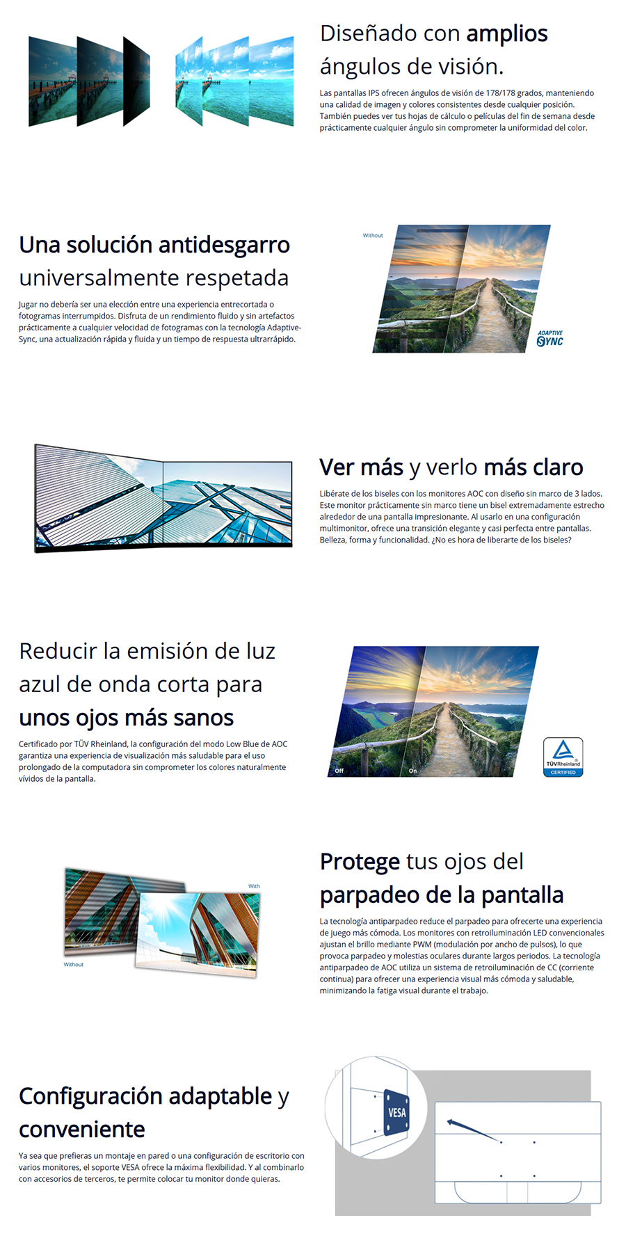 | Aprobaciones regulatorias | Certificado CE/FCC/TÜV Rheinland Low Blue Light |