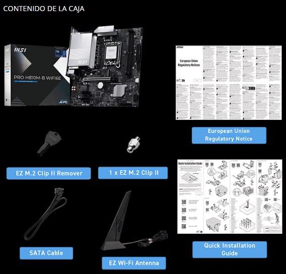 La PRO H810M-B WIFI6E ofrece un diseño sencillo con una armoniosa combinación de colores plateados que se adapta perfectamente a configuraciones de PC tanto blancas como negras. Está equipada con Wi-Fi 6E, LAN de 2.5G y PCIe 5.0, y es compatible con los procesadores.