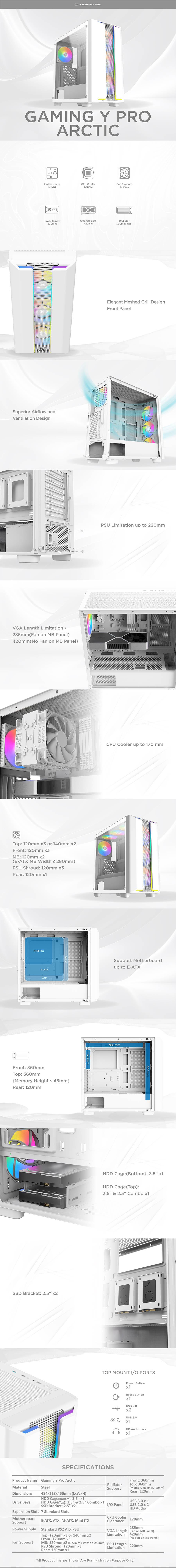 GABINETE XIGMATEK GAMING Y PRO ARCTIC (EATX) TG (4x120MM ARGB)