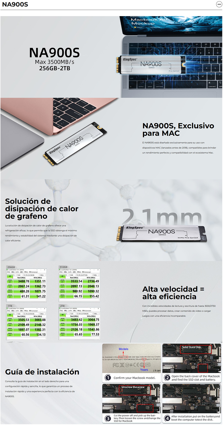 | Nombre de Modelo | NA900S-2TB | Fácil de usar | PCIe Gen3 x4 |